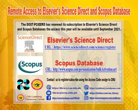 The DOST-PCIEERD has renewed its subscription to Elsevier’s Science Direct and Scopus Databases the access this year will be available until September 2021.