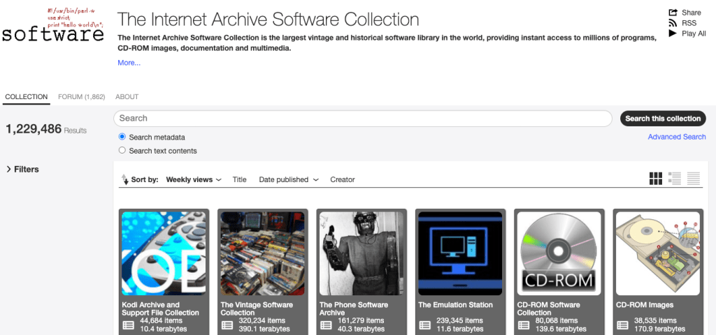 Software Archive: Hosts vintage software, classic video games (like those for MS-DOS and early consoles), and emulators that let users run old programs directly in their browsers. Link: https://archive.org/details/software